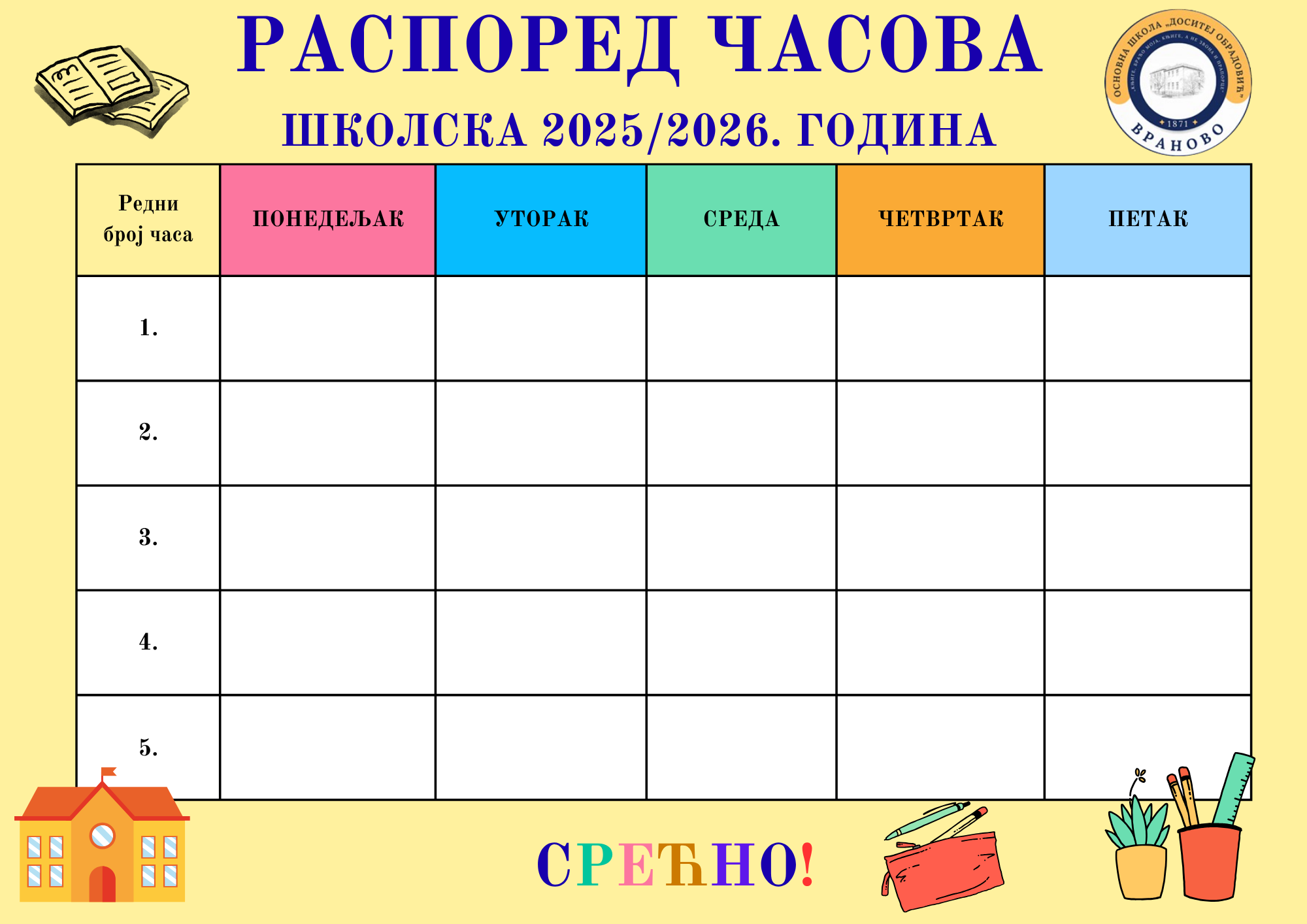 У наставку је распоред часова за разредну и предметну наставу за школску 2025/2026. годину.