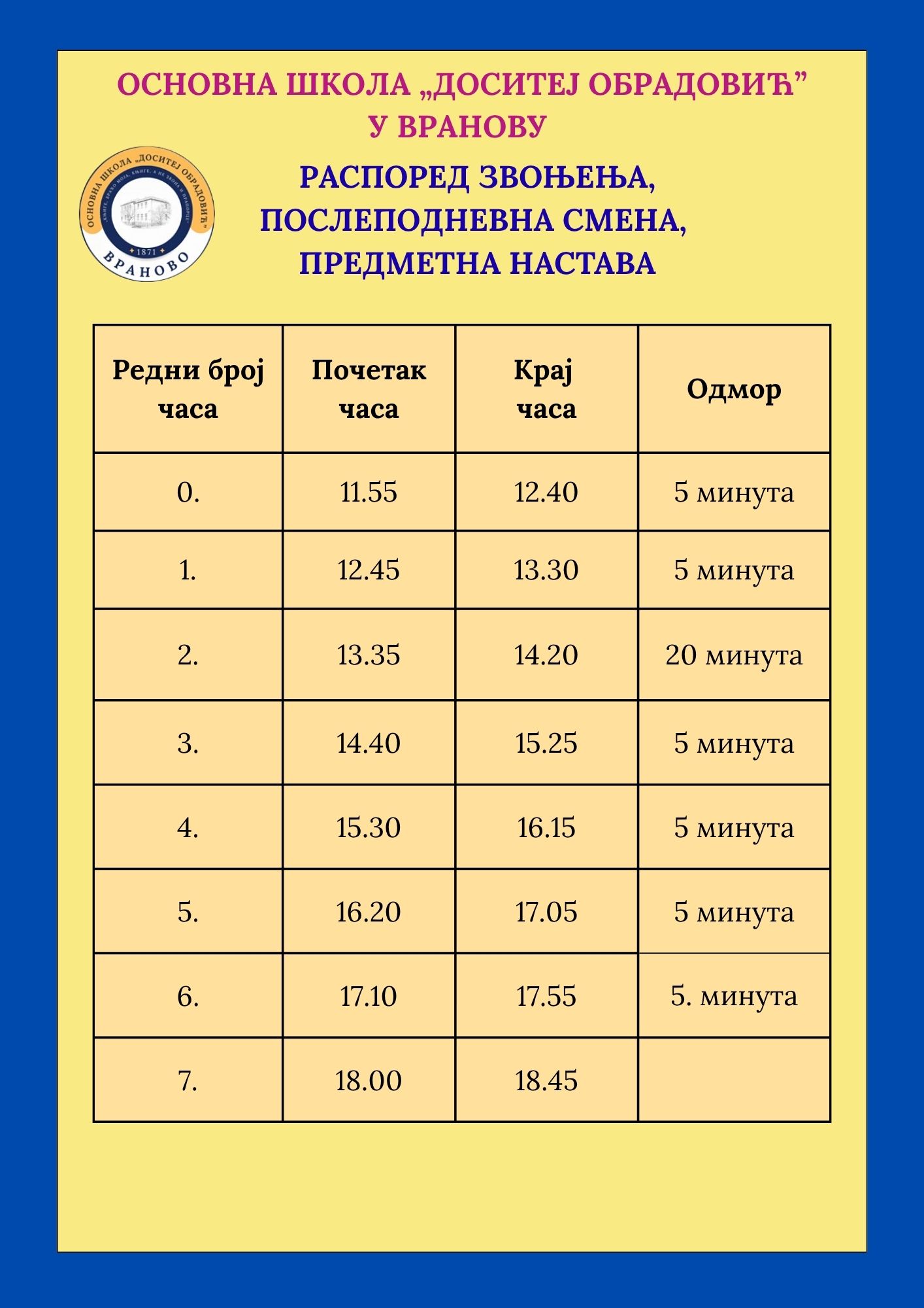 Распоред контролних вежби и писмених задатака за школску 2025/2026. годину