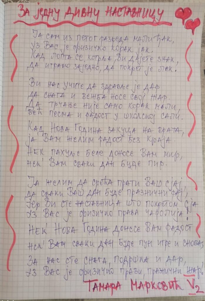 Новогодишња песма за нашу наставницу физичког васпитања