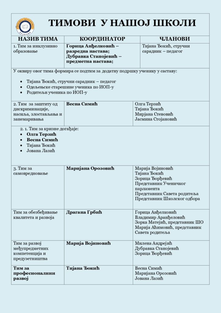 Распоред контролних вежби и писмених задатака за школску 2025/2026. годину